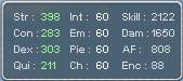 で、現在のBuff込みのステータスはこんな感じです。力が「みwなwぎwっwてwきwたwぜw?www」って感じですか。私のキャラだと理論上WSが最高で2220(RR11、Aug Str5、Str Cap+25状態)なので結構頑張った予感。
