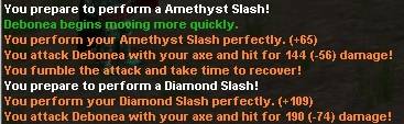 この結果を見ると、DWのメインで使うCSのFlank→Shadow's RainとAmethyst Slash→Diamond Slashのコンボのダメージはあんまり変わりませんね。FlankにはHindered(移動速度の低下)・Shadow's RainにはSlowed(攻撃速度低下)があるので狙っていく意味はありますが、Amethystコンボ連打でもダメージ的には変わらん予感です。あとBack Slashのダメージでかいですね。