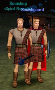 これは腕輪でして、これを装備するとSlashとThrustとCrushのスキルが1づつ上がるというものです。ちなみにこれをもらった私のキャラはこれです。