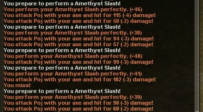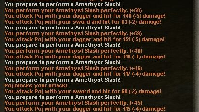 とまぁ、ここまでやってみて思ったのはやっぱりCraft武器が強いなぁと言う事です。そういえば、RvRで使うCSはAmethyst Slahだけなのですが、二刀流のCSはどの位ダメージが出るものなのでしょうか。試しに使ってみます。
