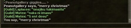 今日はクリスマスイブなので、うちのギルドの人々もお出かけしているようです。それともこれは、以前801疑惑が起こった私とO-Chanへのギルドメンバーからのささやかなクリスマスプレゼントですか?