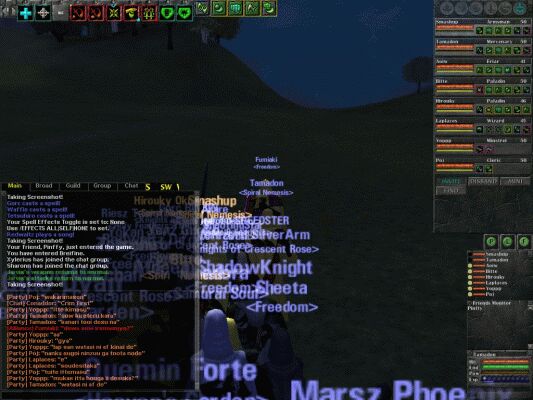 そうそう、今日は半年ぶり位にログインしたpojさんもいます。すごいラグのため、ほとんど動かずに氏んでますが。ビデオカードが私と同じGeforce4ti 4200なのでそこそこ快適に動くはずなのですが。得意技の初期不良ですかね。